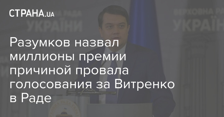 По мнению председателя Верховной Рады Дмитрия Разумкова, Верховная Рада не поддержала кандидатуру Юрия Витренко на должность первого вице-премьер-министра - министра энергетики в связи с информацией о выплате ему $4 млн бонусов от "Нафтогаза".