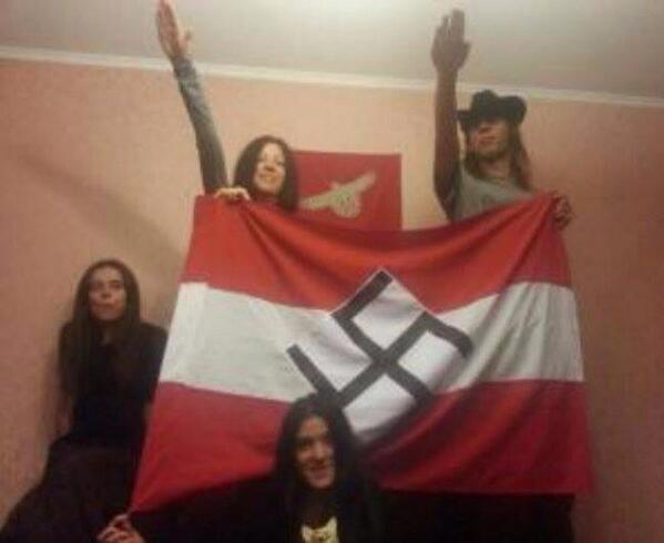 Представитель "Азова" в международном правом движении Елена Семеняка тоже пообщалась с журналистом. Он напомнил о ее фотографии со свастикой и нацистским приветствием.