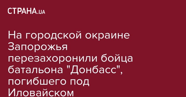 На кладбище, расположенном на городской окраине Запорожья, перезахоронили погибшего под Иловайском солдата батальона "Донбасс", сообщает УНН.