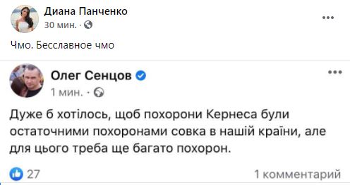 12:50 "Очень бы хотелось, чтобы похороны Кернеса были окончательными похоронами совка в нашей стране, но для этого надо еще много похорон" - написал Олег Сенцов.
