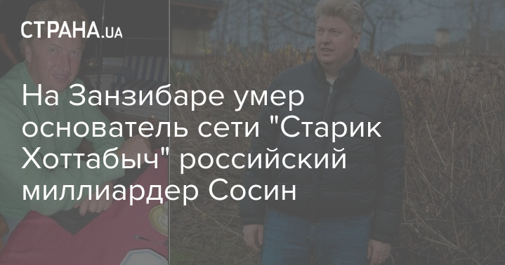 На Занзибаре в возрасте 53 лет внезапно умер российский миллиардер, хозяин магазинов "Старик Хоттабыч" и совладелец сетей OBI и Modis Игорь Сосин. Он скончался ночью предположительно от остановки сердца.