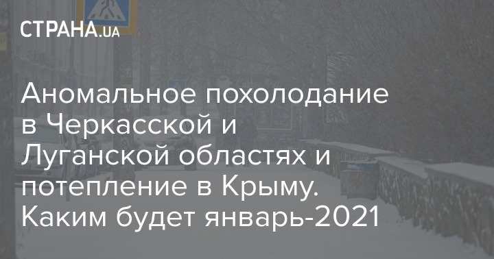 В январе наступающего 2021 года, по прогнозам синоптиков, погода в Украине будет колебаться от резкого потепления в Крыму до аномального похолодания в Луганской и Черкасской области. Показатели термометров в начале года будут выше средних многолетних значений