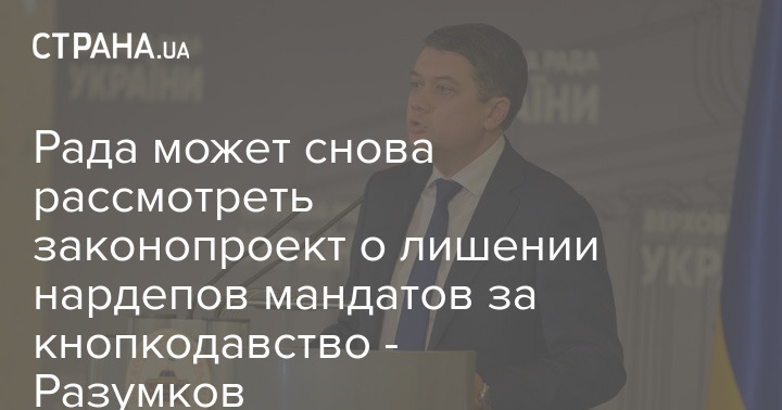 Председатель Верховной Рады Украины Дмитрий Разумков заявил, что возможно повторное инициирование законопроекта с изменениями в Конституцию, который предусматривает лишение народных депутатов полномочий за неперсональное голосование.