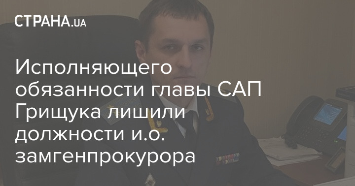 Офис генпрокурора лишил и.о. главы Специализированной антикоррупционной прокуратуры Максима Грищука должности исполняющего обязанности заместителя генпрокурора.