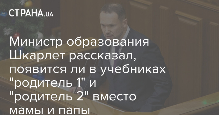 На вопрос, начнут ли в украинских учебниках называть маму и папу "родителем 1" и "родителем 2", Шкарлет ответил так: