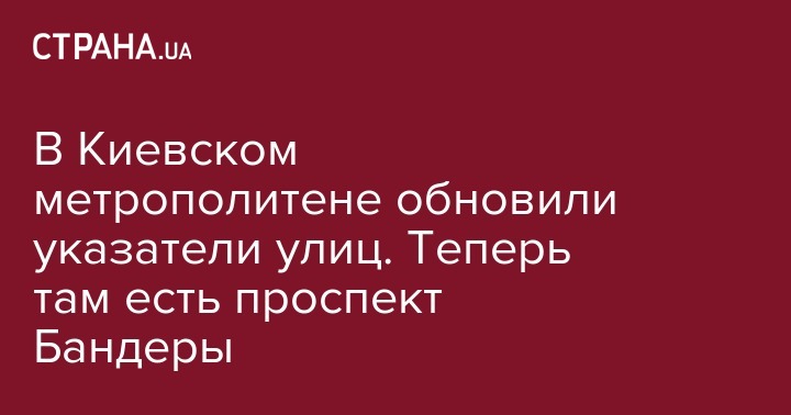 В Киеве в метрополитене обновили указатели улиц, которые сменили свои названия в процессе декоммунизации. В частности, теперь на станции метро "Петровка" вместо Московского проспекта указано новое название - проспект Бандеры. Об этом сообщает КиевVласть.