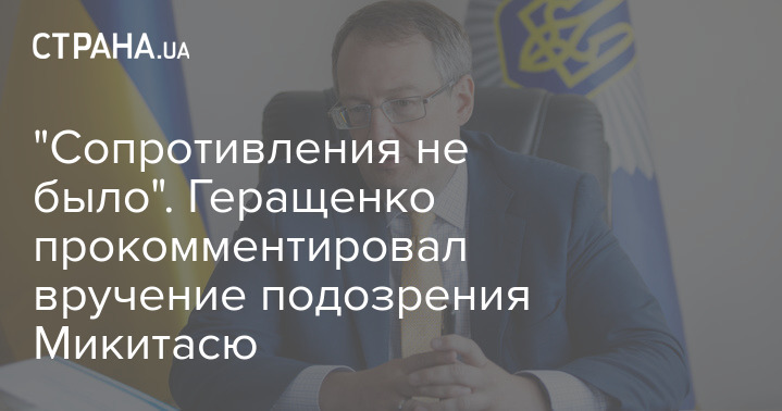"Сопротивления не было". Геращенко прокомментировал вручение подозрения Микитасю
