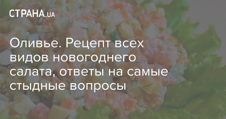 В этом материале "Страна" публикует состав оливье (причем, все возможные варианты - как классического, так и оригинального). Еще мы подробно отвечаем на самые стыдные вопросы про главный новогодний салат. Обо всем этом ниже, а по ссылке бонус - что приготовить еще на Новый год 2021: оригинальные закуски и фруктовое канапе.