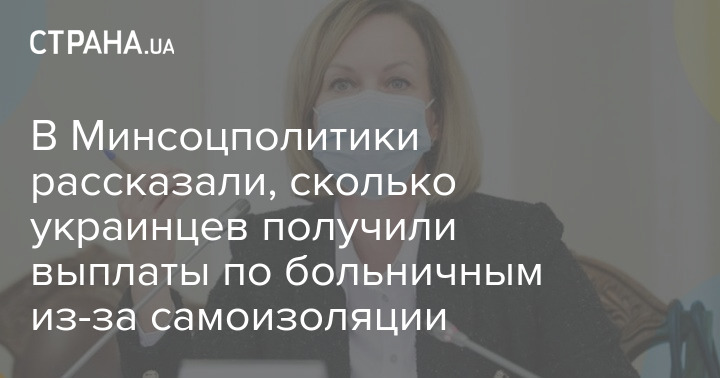 Министр социальной политики Марина Лазебная заявила, что в Украине уже оплатили 70 тысяч больничных, оформленных из-за самоизоляции в связи с подозрением на Covid-19.