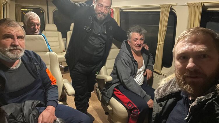 Член Общественной палаты РФ Александр Малькевич вместе с освобожденными из плена. Фото: Telegram