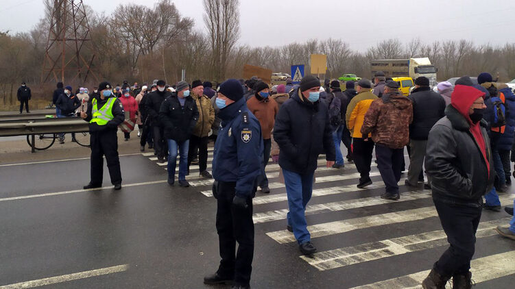 Под Полтавой сотни жителей взбунтовались против повышения тарифов и перекрыли трассу Киев-Харьков. Фото