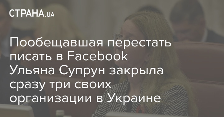 Пообещавшая перестать писать в Facebook Ульяна Супрун закрыла сразу три своих организации в Украине