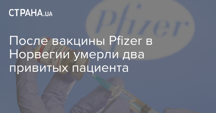 В Норвегии два человека скончались через несколько дней после прививки Pfizer.