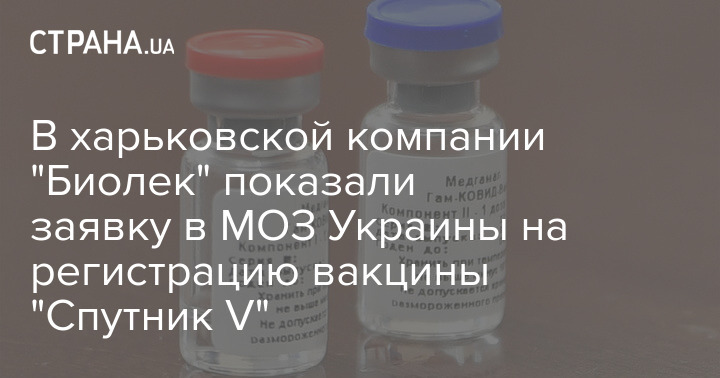 В харьковской компании "Биолек" показали заявку в МОЗ Украины на регистрацию вакцины "Спутник V"