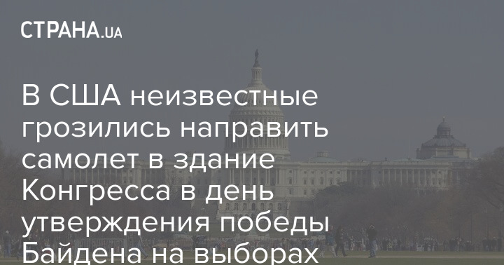 Нью-йоркские авиадиспетчеры в понедельник, 4 января, получили сообщение с предупреждением о том, что 6 января в здание Конгресса США, который в этот день утвердит победу Джо Байдена на выборах президента США, будет направлен самолет.
