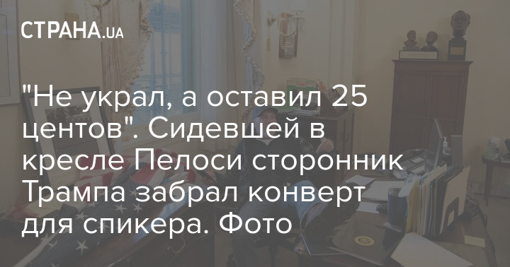 Отмечают, что сам мужчина говорит, что не крал конверт, ведь оставил в замен на столе у Пелоси 25 центов.