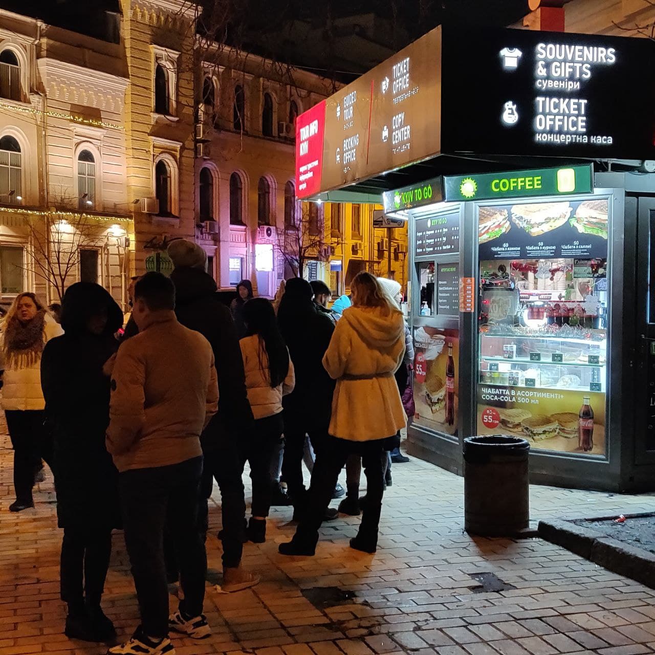 Рядом со всем этим великолепием работал киоск, где разливали глинтвейн. Интересно, что под эти цели приспособили кофейную точку, которая стояла через 10-15 метров от основного "движа". А вот ярмарка, где продавали горячий напиток ранее, была показательно закрыта.