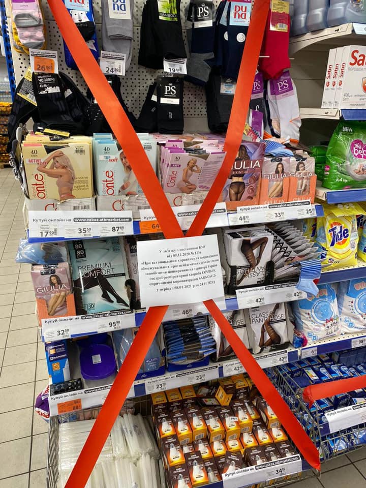 Сразу выяснилось, что список товаров, которые запрещены к продаже во время локдауна, доступен на магазинных полках. Речь о носках, батарейках, косметике, книгах, канцелярии и других.