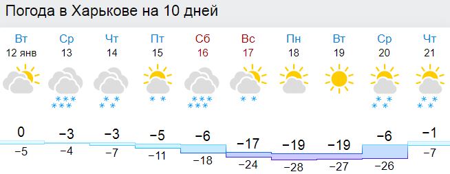 В Одессе с 16 по 18 января днем -8...-11, ночью -12...-14. Во вторник, 19 января, днем 0, ночью -10.