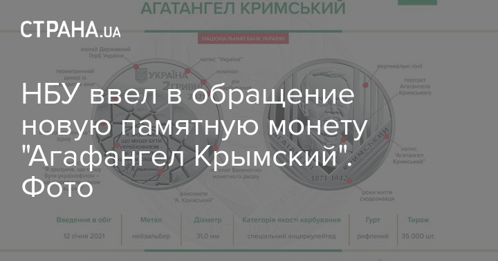 Также "Страна" сообщала, что НБУ введет в обращение монету "175 лет создания Кирилло-Мефодиевского общества". Она посвящена украинской тайной организации, возникшей в Киеве в конце 1845 года, что было одним из проявлений подъема национального движения и активизации общеславянского движения.