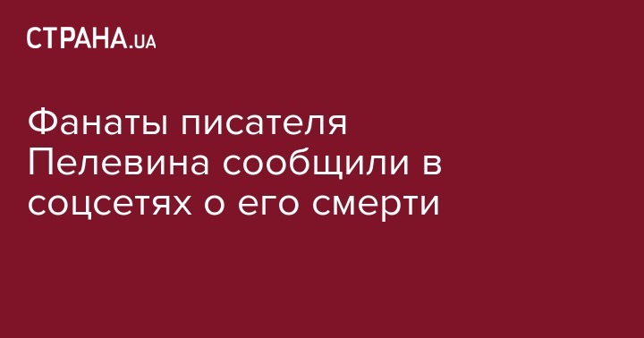 Поклонники российского писателя Виктора Пелевина сообщили о его смерти в крупнейшем русскоязычном фанатском сообществе Пелевина в Facebook.