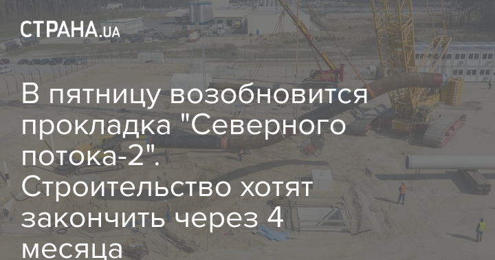 В пятницу Россия возобновит строительство своего газопровода "Северный поток-2", как ранее и прогнозировалось. Строительство будет идти на последнем - датском участке (работы на немецком участке были закончены еще до нового года). Полностью строительство трубопровода планируют завершить через 4 месяца.