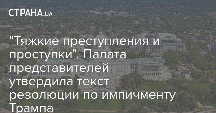 Окончательный вариант резолюции уже утвержден и носит название: "Импичмент Дональду Джону Трампу, президенту Соединенных Штатов, за тяжкие преступления и проступки".