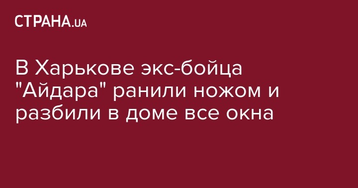 В Харькове неизвестный вооруженный человек пришел с угрозами к бывшему бойцу "Айдар" Максиму Копылову. Пока его не было дома нападавший разбил окна, а дождавшись хозяина, набросился на него с ножом. Об этом сообщает "УНИАН"