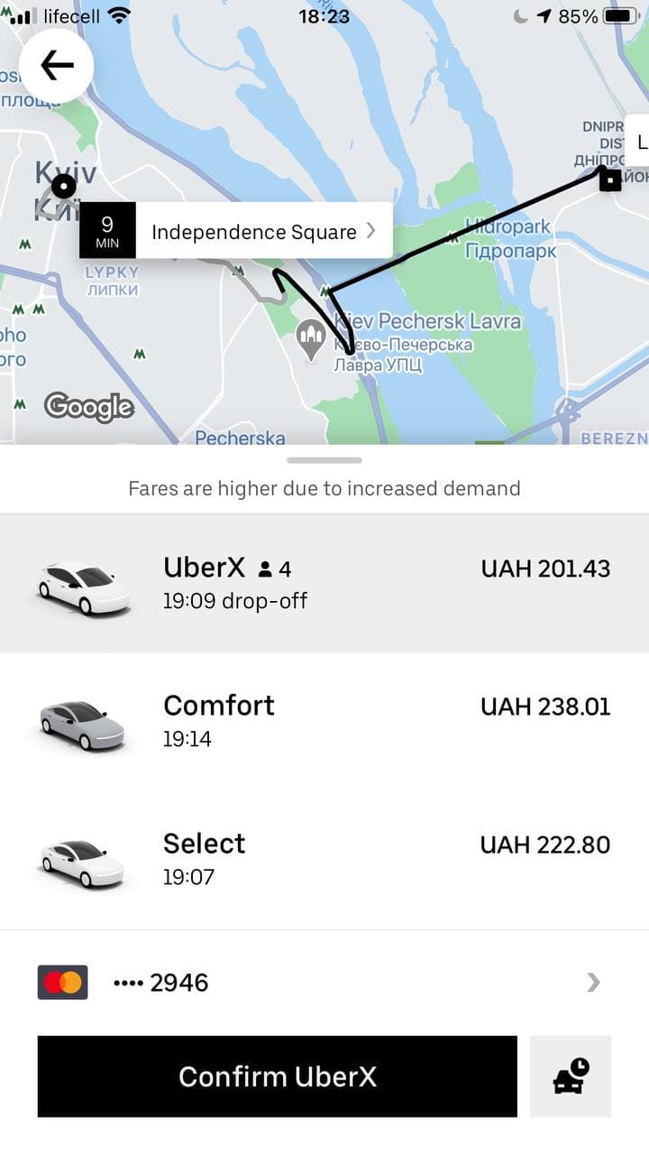 А от Майдана на Левобережную дешевле чем за 200 гривен не уехать (обычно этот маршрут обходится не дороже 100 грн).