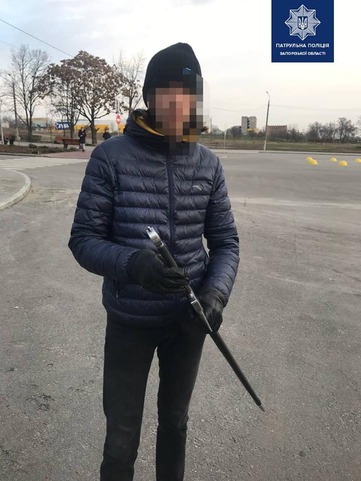 Вчера, 12 января, в Запорожье на проспекте Маяковского полицейские заметили мужчину, который нес в руках предмет, похожий на холодное оружие.