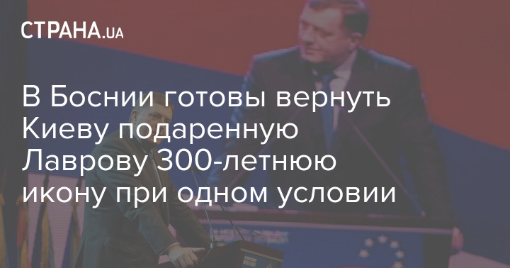 Председатель президиума Боснии и Герцеговины Милорад Додик заявил о готовности вернуть Украине икону, месяц назад подаренную министру иностранных дел России Сергею Лаврову, если Киев представит доказательства, что искал ее раньше.