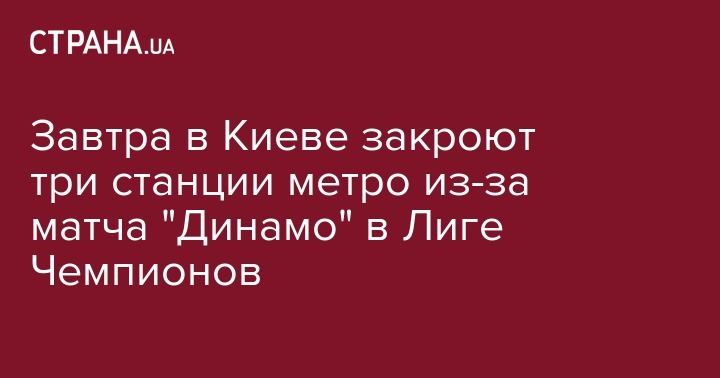 Завтра в Киеве закроют три станции метро из-за матча "Динамо" в Лиге Чемпионов
