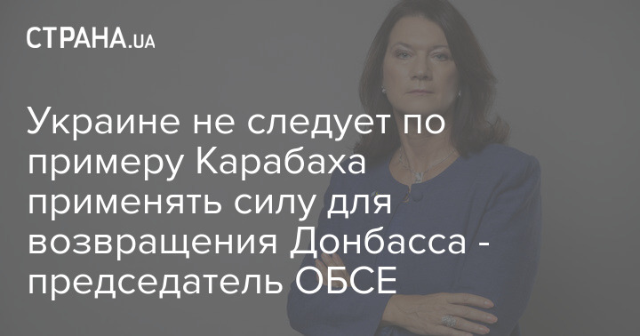 Действующий председатель ОБСЕ, глава МИД Швеции Анн Линде заявила, что Украина не должна применять силу для возвращения Донбасса по примеру событий в Карабахе.