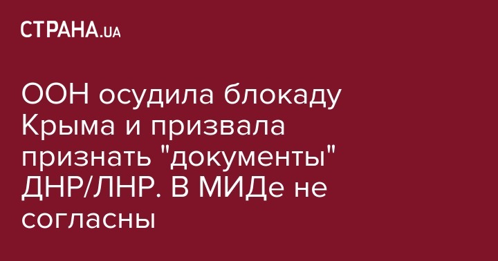 В Министерстве иностранных дел Украины раскритиковали тезис из 13-го доклада Управления верховного комиссара ООН по правам человека по результатам работы соответствующей миссии ООН в стране о необходимости (УВКПЧ ООН) легемитизировать документы, выданные оккупационными властями Крыма и отдельных районов Донецкой и Луганской областей Украины