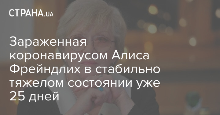 Состояние советской и российской актрисы Алиса Фрейндлих, которая наиболее известна зрителям по роли Людмилы Прокофьевны Калугиной в фильме "Служебный роман", остается стабильно тяжелым. Она продолжает находиться в реанимации, куда 25 дней назад (28 декабря 2020 года) была госпитализирована с коронавирусом, под наблюдением врачей.
