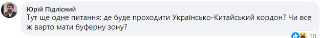 "Здесь еще один вопрос: где будет проходить украинско-китайская граница? Или все же стоит иметь буферную зону?", - задается в комментариях у Омеляна важным вопросом завкафедрой политических наук Украинского католического университета Юрий Подлесный.