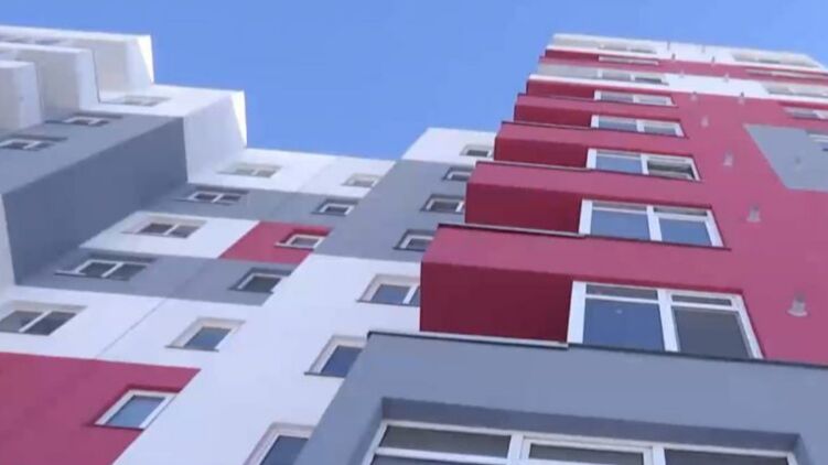 Многоэтажный дом, из окна которого выпал военный. Скриншот с видео
