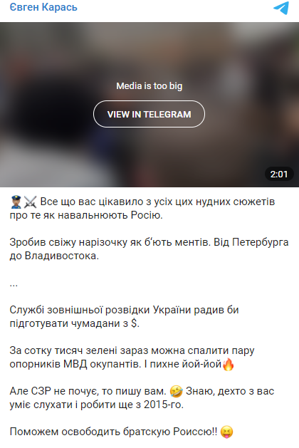 А вот глава С14 Евгений Карась даже призвал украинскую разведку выделить деньги на провокации в России. Чтобы раздуть пламя протестов.