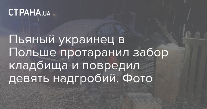 В польском городе Вронки, расположенном на западе страны, 21-летний украинец в состоянии алкогольного опьянения протаранил на своем автомобиле забор местного кладбища. В результате были повреждены 9 надгробий.