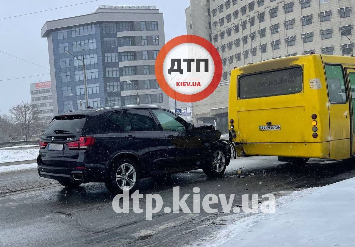 11:18 В Печерском районе Киева на улице Михаила Бойчука BMW X5 въехал в маршрутку № 491. Полиция на месте, сообщает dtp.kiev.info.