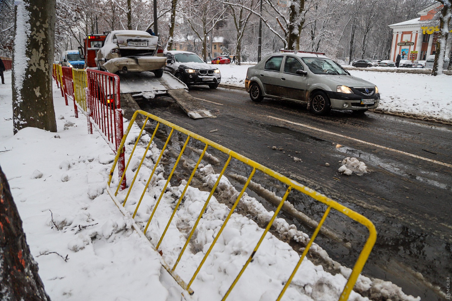 8:00 Одессу со вчерашнего дня засыпало снегом. Высота покрова достигла 5-6 сантиметров. Дорожные и коммунальные службы расчищают улицы и просят горожан не выходить из дома.