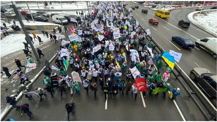 Поход протестующих ФОПов к посольству США парализовал движение в центре Киева. Фото и видео