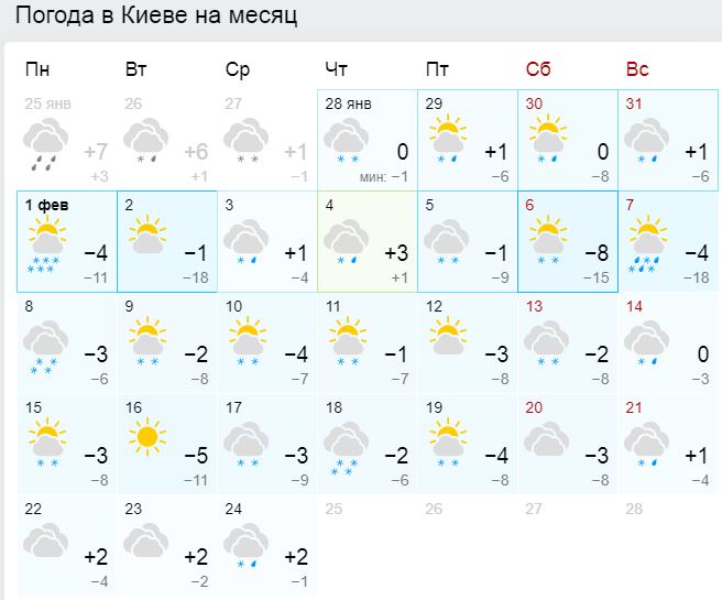 Погода в Киеве в феврале