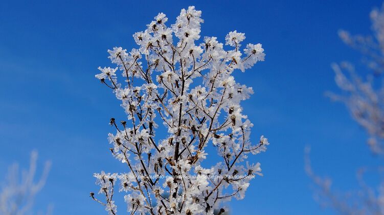 Сотрудники Чернобыльского радиационно-экологического биосферного заповедника показали растения зоны отчуждения в зимнем инее. На них деревья и кустарники выглядят словно хрустальные.