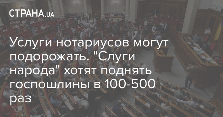 В повестке Верховной Рады сегодня появились два законопроекта "слуг народа" о повышении госпошлины за нотариальные услуги. Их могут рассмотреть в первом чтении.