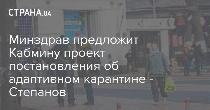 Министерство здравоохранения в ближайшее время вынесет на заседание Кабинета министров проект постановления о введении в Украине адаптивного карантина, в рамках которого регионы будут поделены на зоны ограничений в зависимости от эпидемиологической ситуации в них.