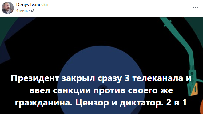 "Президент закрыл сразу 3 телеканала и ввел санкции против своего же гражданина. Цензор и диктатор. 2 в 1", - отреагировал журналист Денис Иванеско.