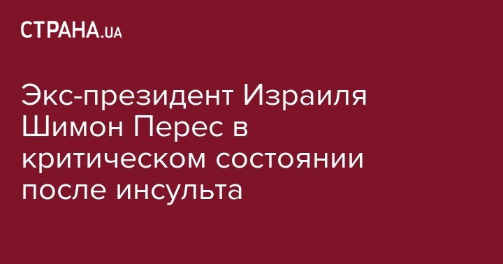 Экс-президент Израиля Шимон Перес в критическом состоянии после инсульта