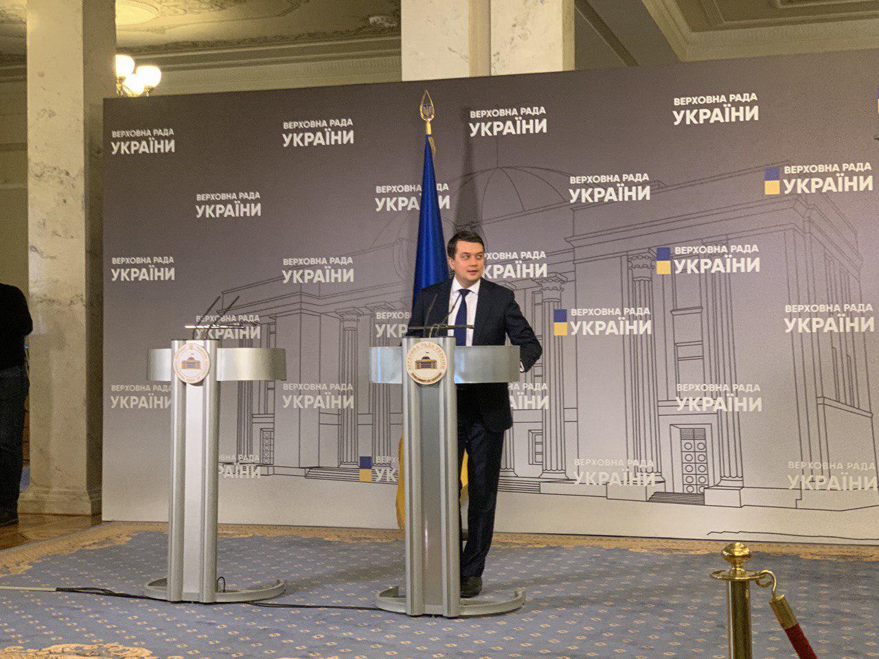 12:03 Начался брифинг спикера Верховной Рады Дмитрия Разумкова.