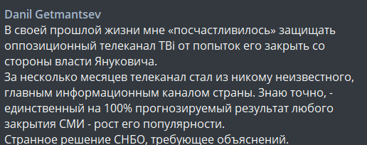 "В своей прошлой жизни мне "посчастливилось" защищать оппозиционный телеканал ТВі от попыток его закрыть со стороны власти Януковича.